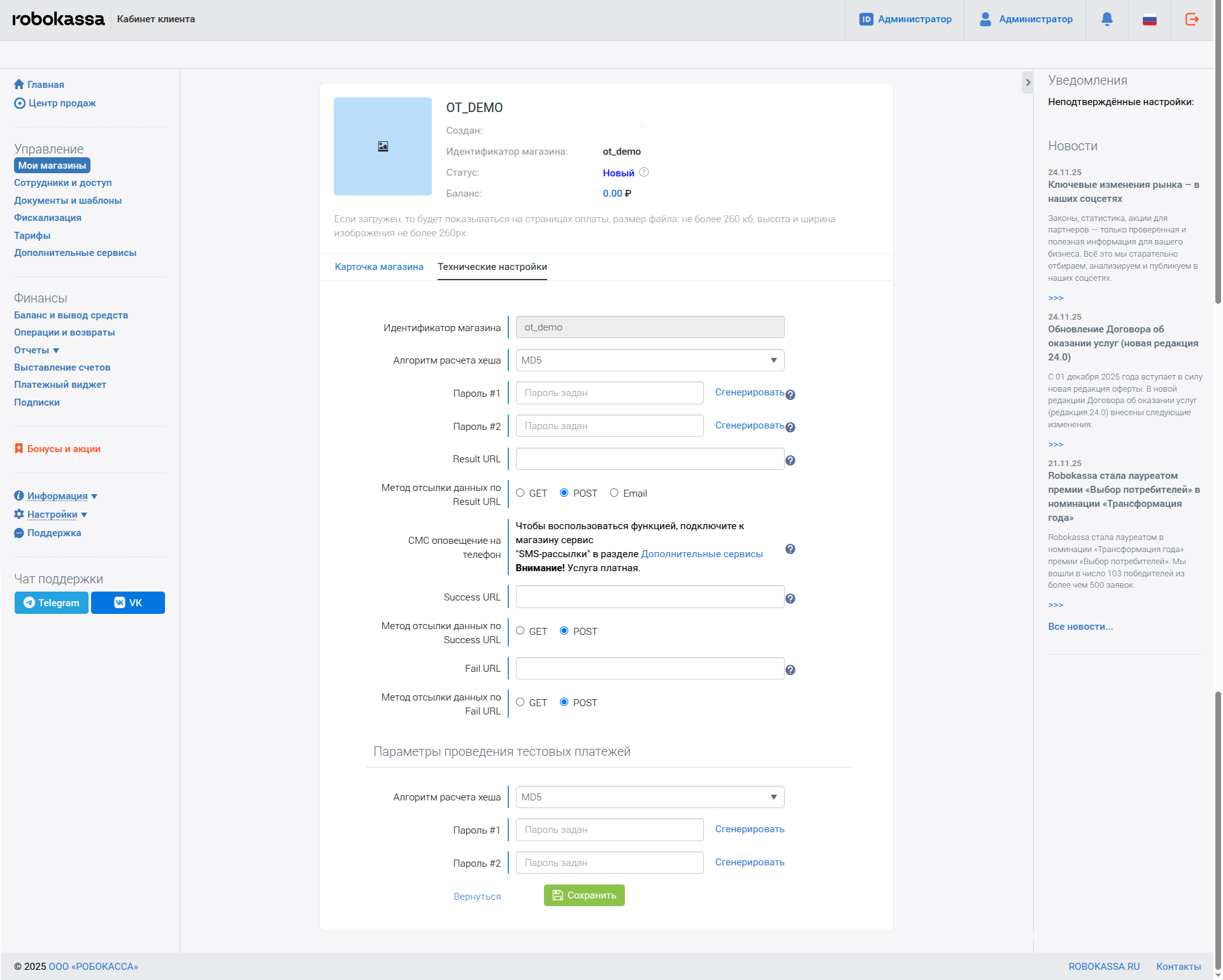 - Идентификатор магазина. Название вашей организации (магазина) в личном кабинете Робокассы. Доступно на вкладке «Технические настройки» личного кабинета (Рис. 4.1.3).