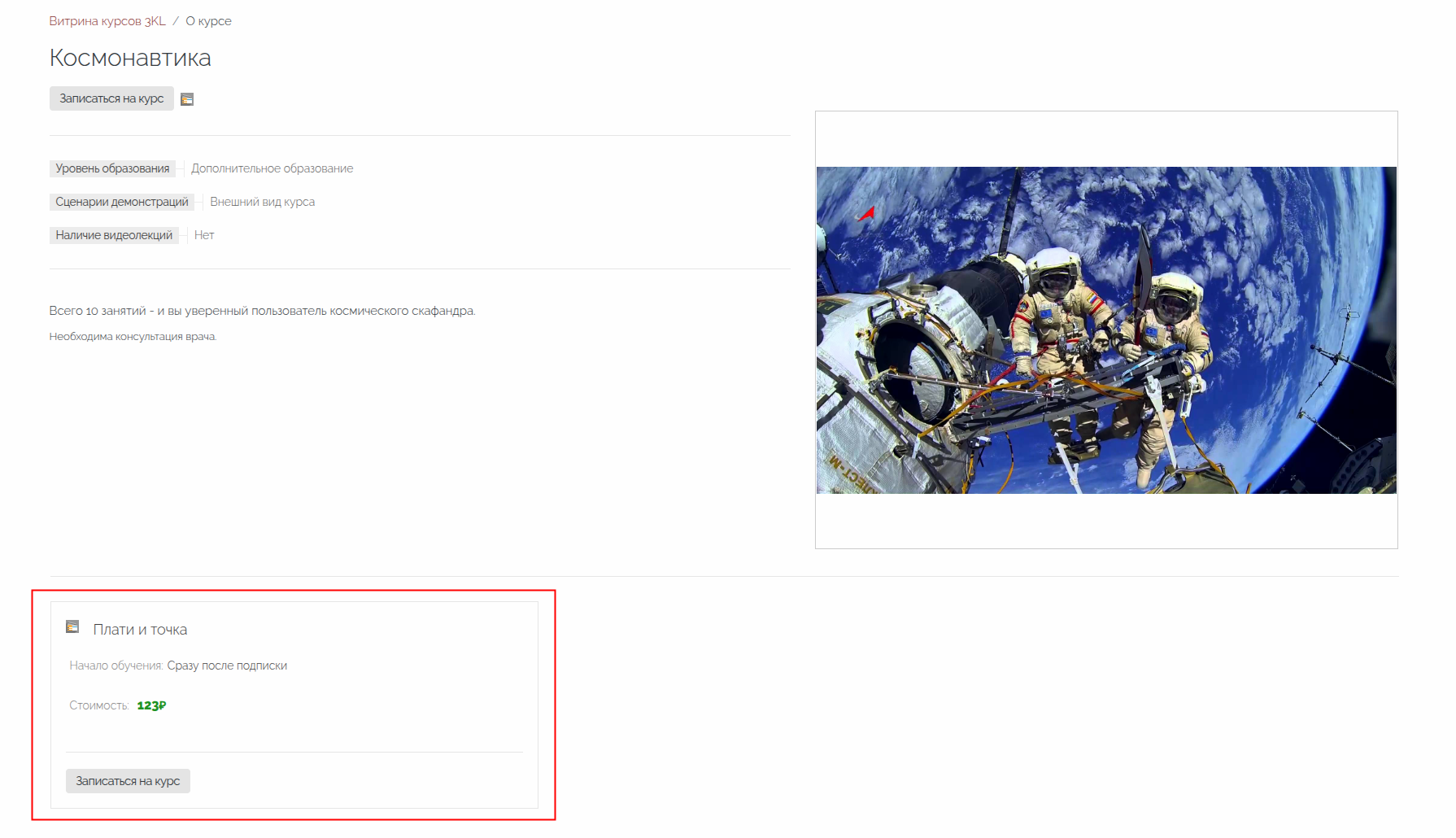 2) Настроенный способ подписки отображается потенциальным слушателям на странице описания курса (Рис. 2.2.4).