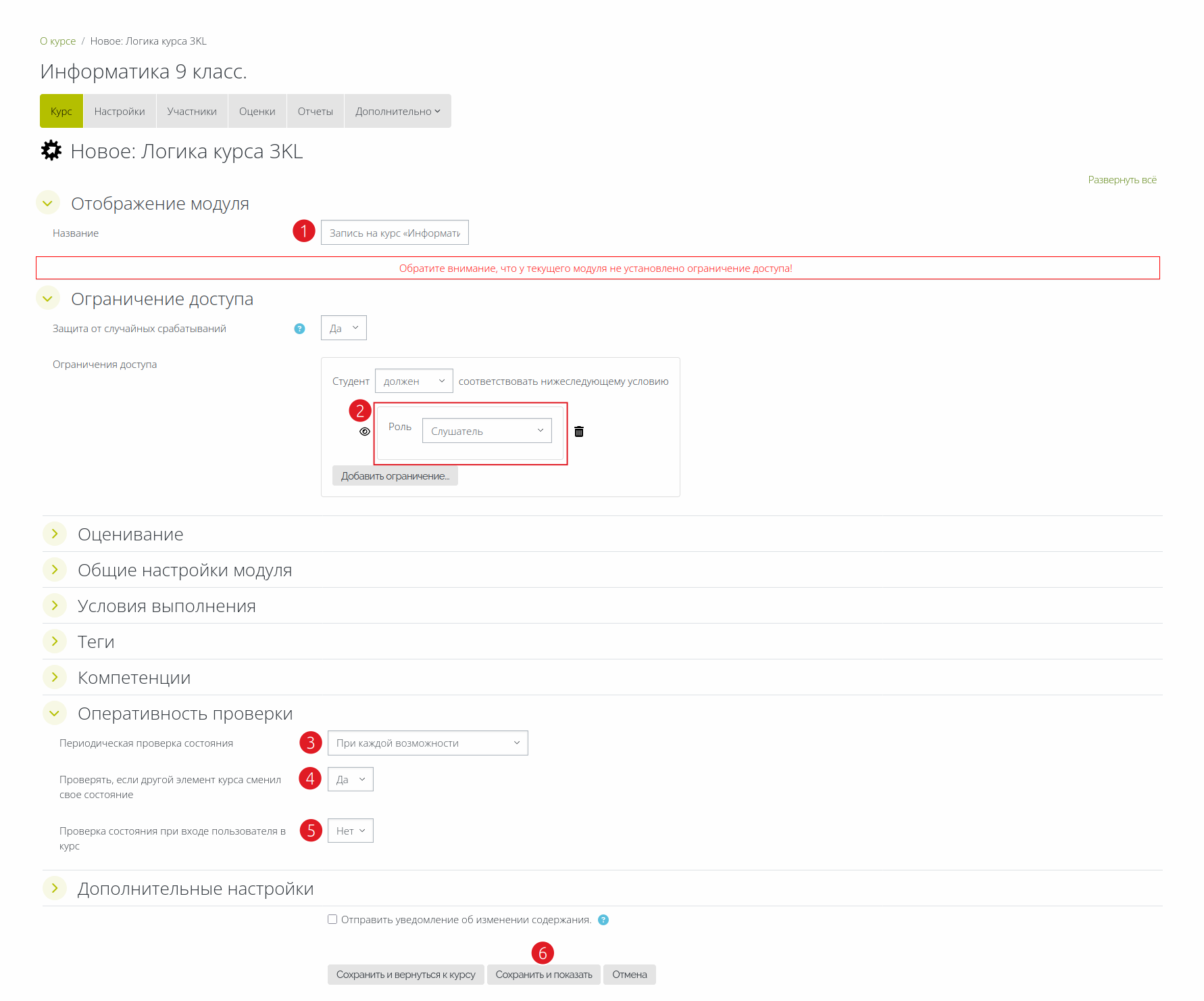 Ограничение доступа к материалам курса в зависимости от принадлежности к локальной группе;