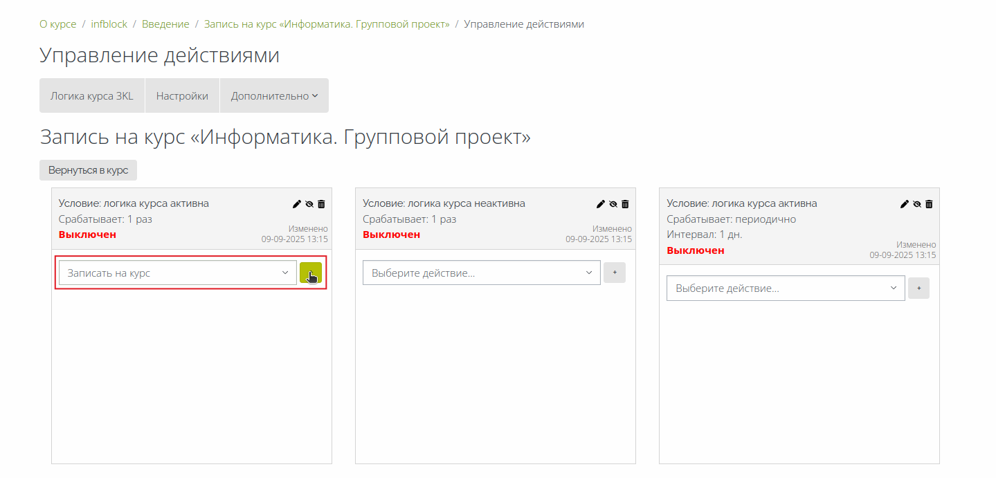 1) В управлении действиями выбрать «Записать на курс» (Рис. 3.3.1):