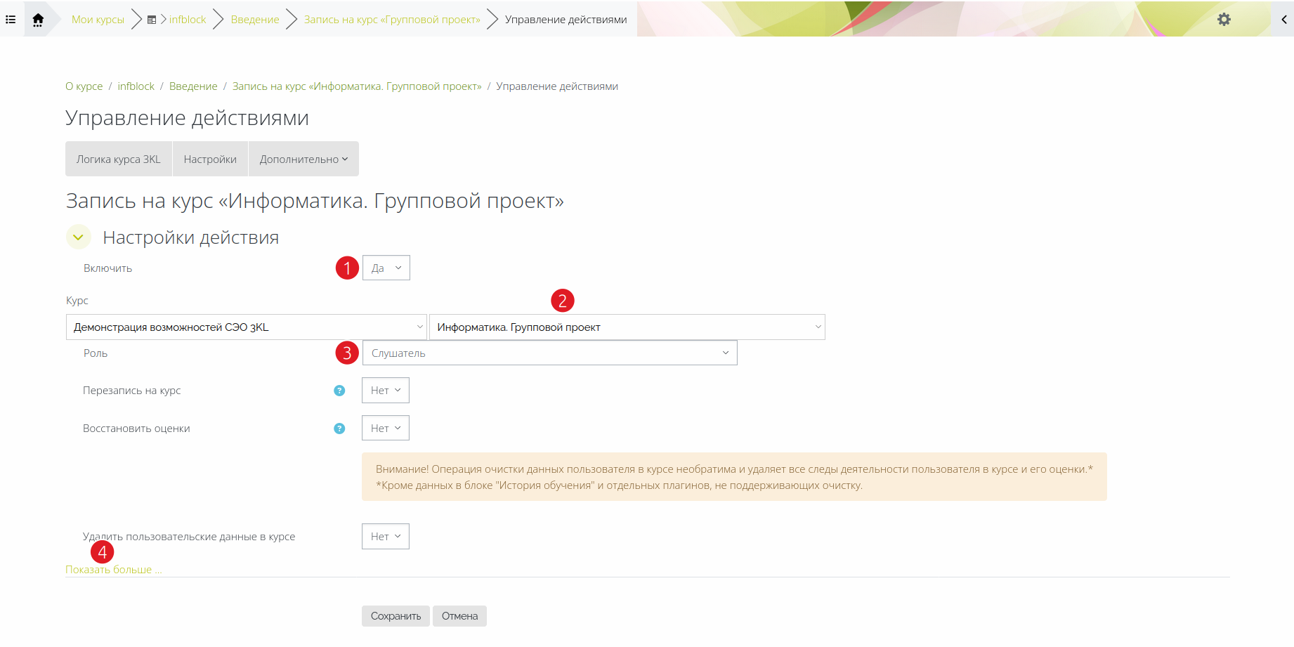 - Курс = «Информатика. Групповой проект» (см. поз. 2 Рис. 3.3.2).