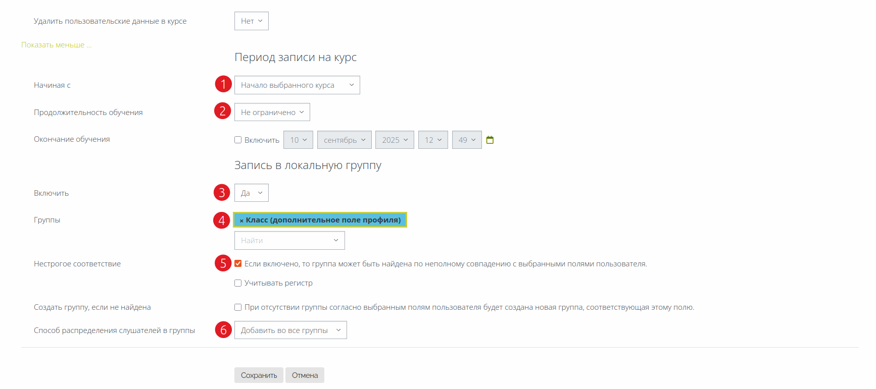 - Группы = Класс (дополнительное поле профиля) (см. поз. 4 Рис. 3.3.3).