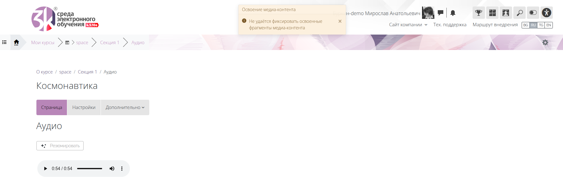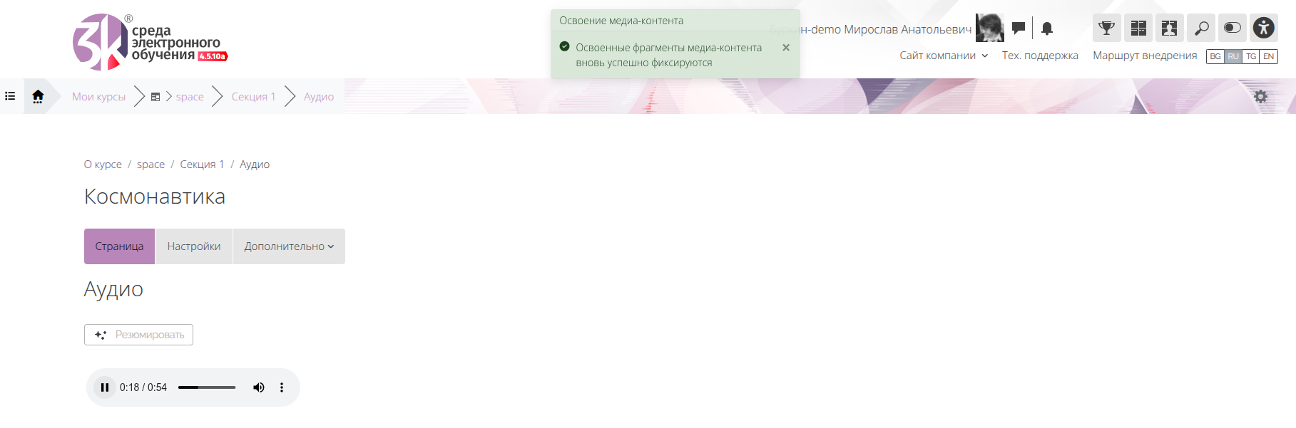 - Нет. Отслеживание и подсчет освоения медиаконтента в данном курсе выключено.