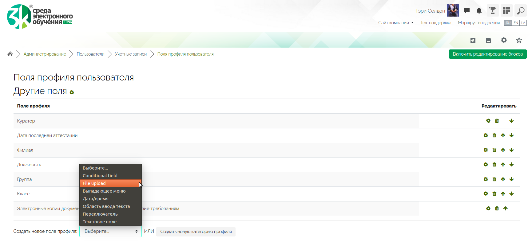 Создание поля профиля типа File upload