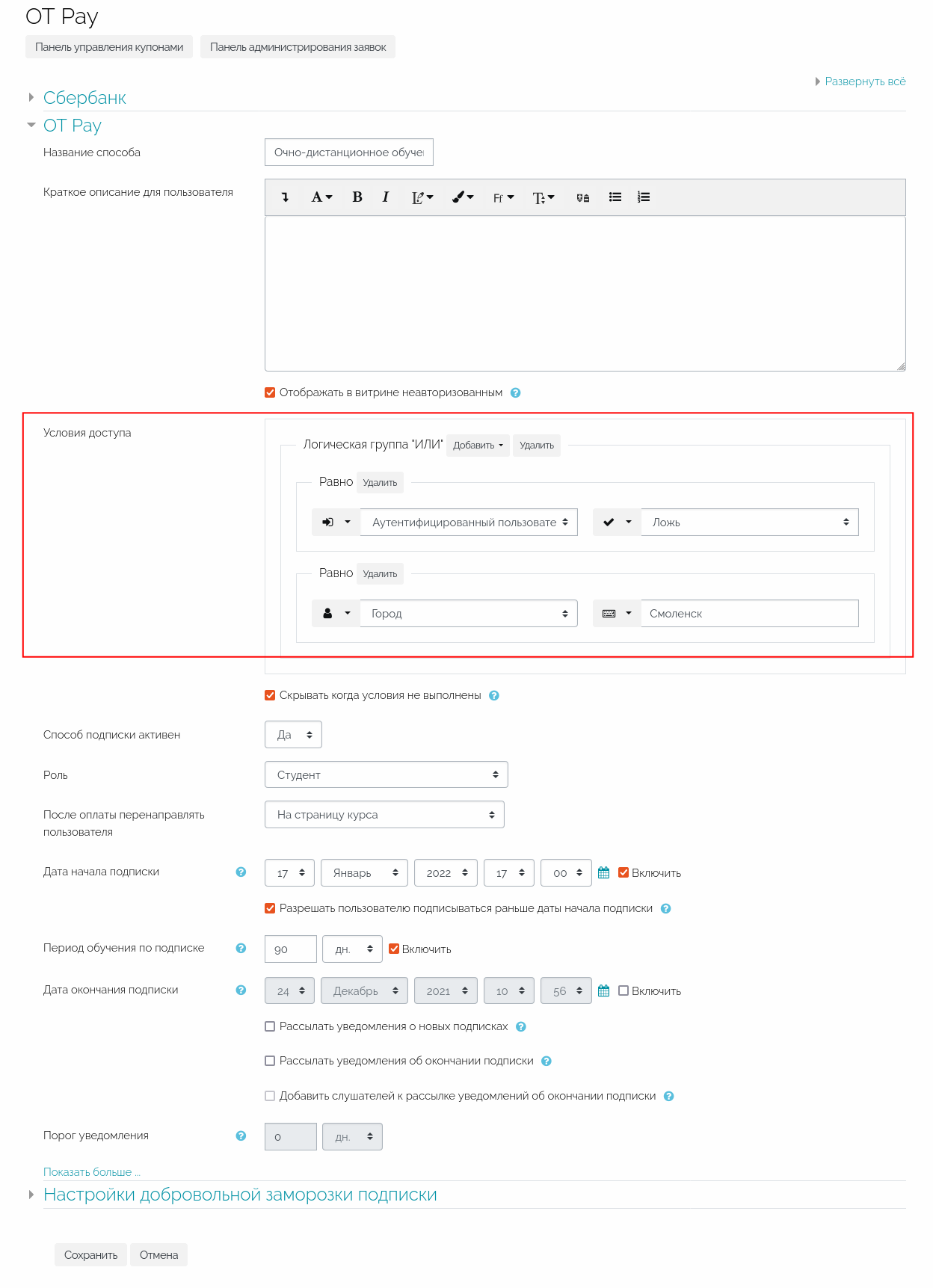 Новая функция для плагина OT Pay: добровольная заморозка подписки на курс. В настройках можно установить допустимое количество заморозок и максимальный срок заморозки в днях. #3487