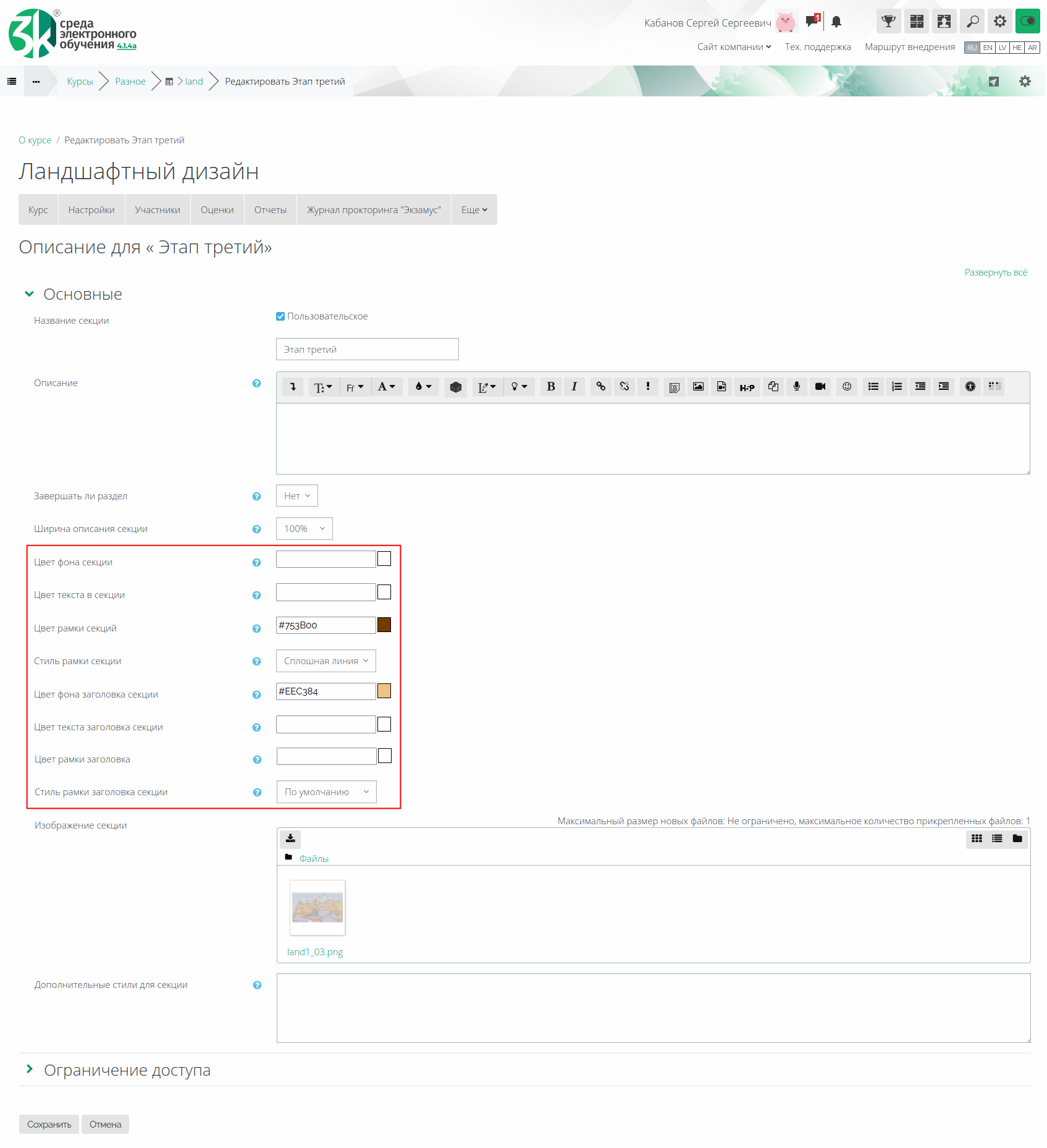 В формате курса «СЭО 3KL» добавлена возможность настроить цветовое оформление для каждой секции курса. #3763