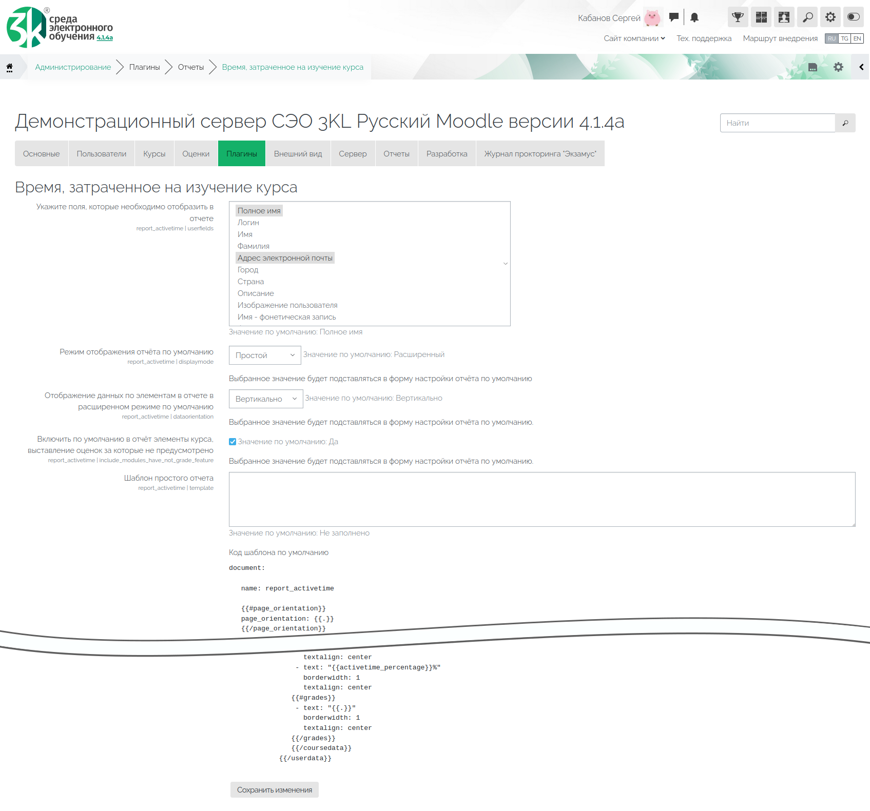 Глобальные настройки плагина отчета «Время, затраченное на изучение курса»