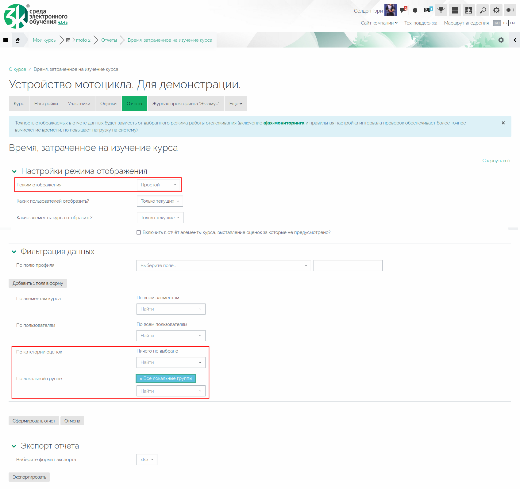 Расширены возможности фильтрации и кастомизации внешнего вида отчета «Время затраченное на изучение курса».