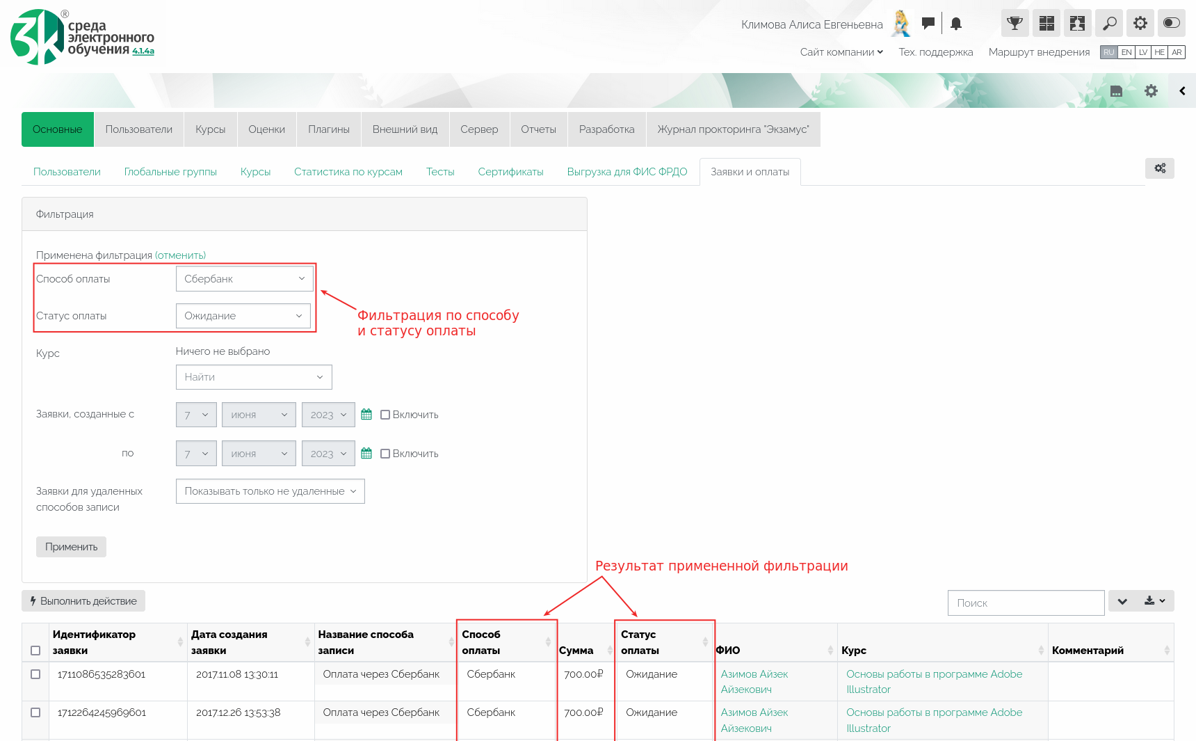 Диспетчер-администратор среды электронного обучения проверяет поступившие платежи и модерирует доступ к курсам пользователям, оплатившим обучение. С новой настройкой фильтрации по статусу платежа во вкладке «Заявки и оплаты» Панели управления СЭО 3KL диспетчеру-администратору стало намного удобнее формировать список пользователей для массового действия подтверждения факта оплаты.