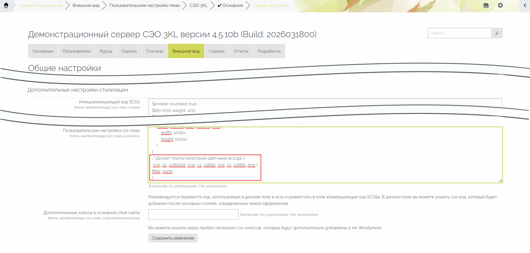 Подробное описание всех настроек темы оформления изложено в статье  «Настройка темы оформления «СЭО 3KL».