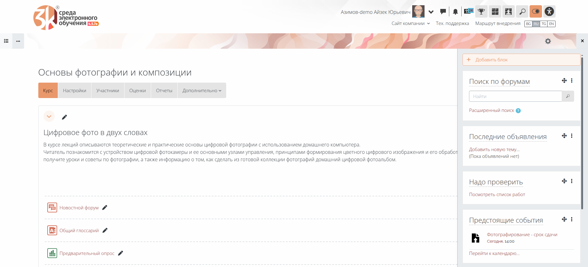 После этого блок будет отображаться на страницах всех курсов категории (Рис. 3.1.6.д).