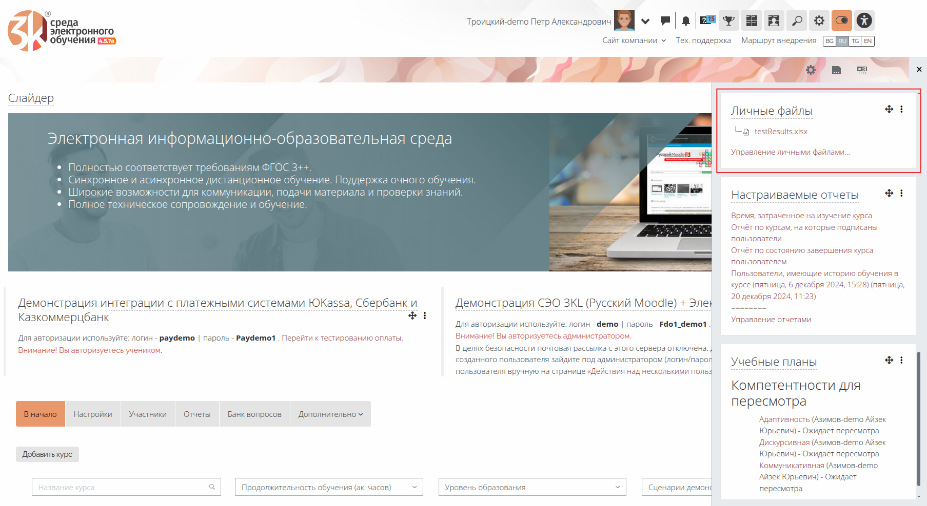 Преподаватели могут редактировать состав блоков на страницах тех курсов, в которых они преподают (Рис. 2.2.2).