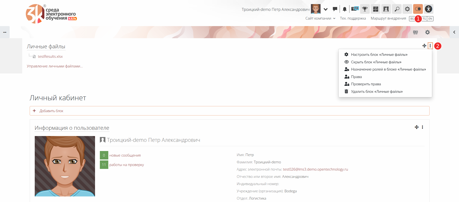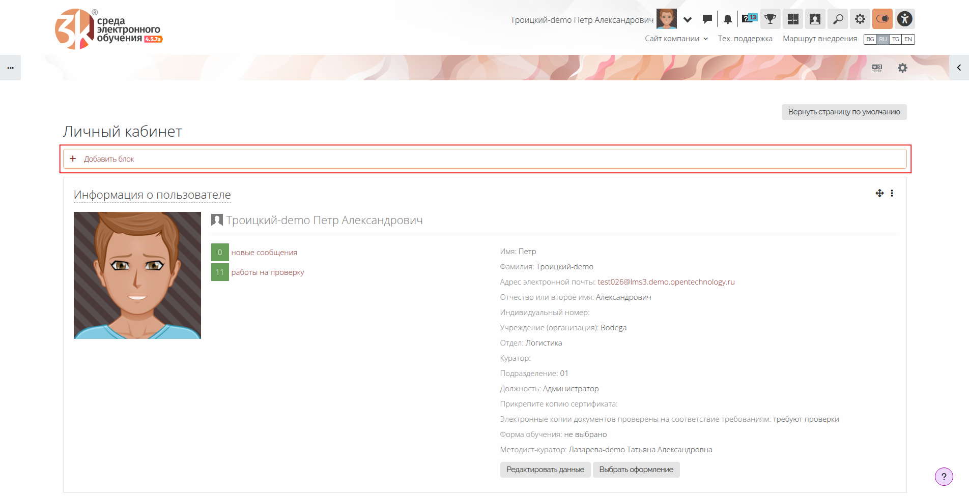 3.1.4. Редактирование состава блоков на странице Личного кабинета всех пользователей СЭО 3KL