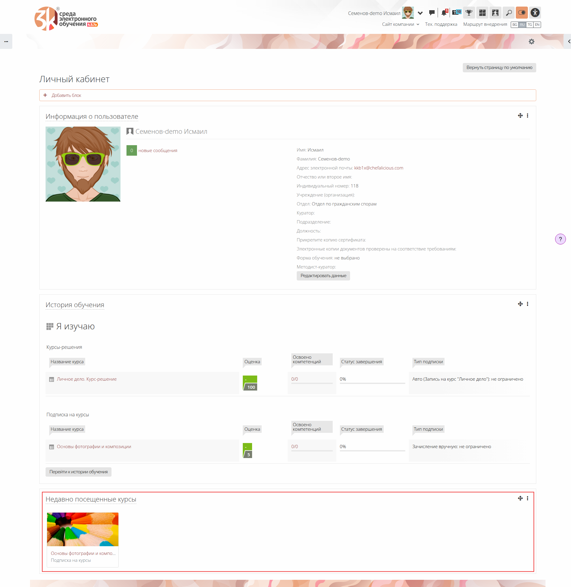 6.1. Быстрый доступ слушателя к курсам в личном кабинете с помощью блока «История обучения 3KL»