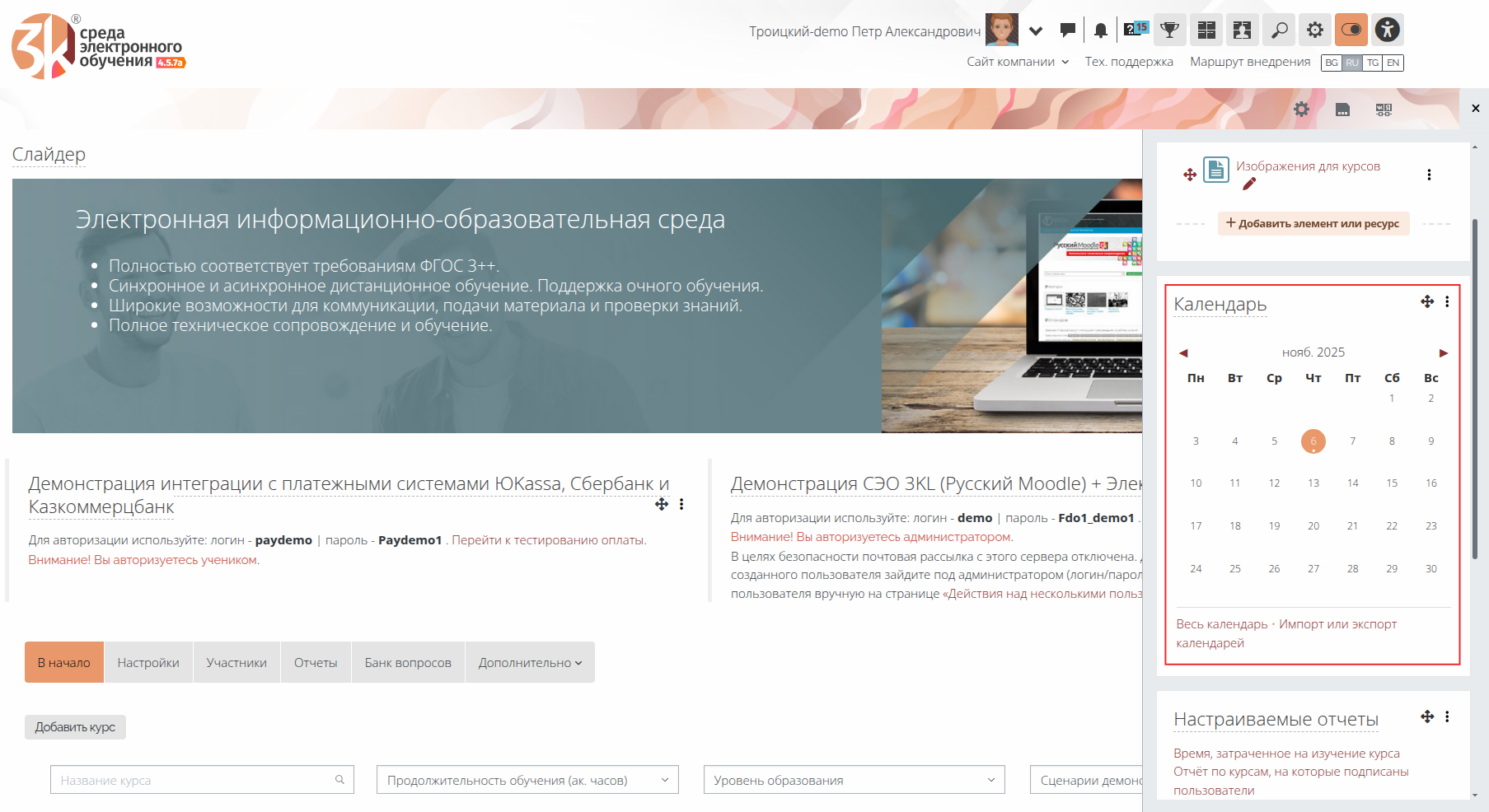 - block/calendar_month:myaddinstance: Добавлять новый блок «Календарь» на страницу «Личный кабинет».