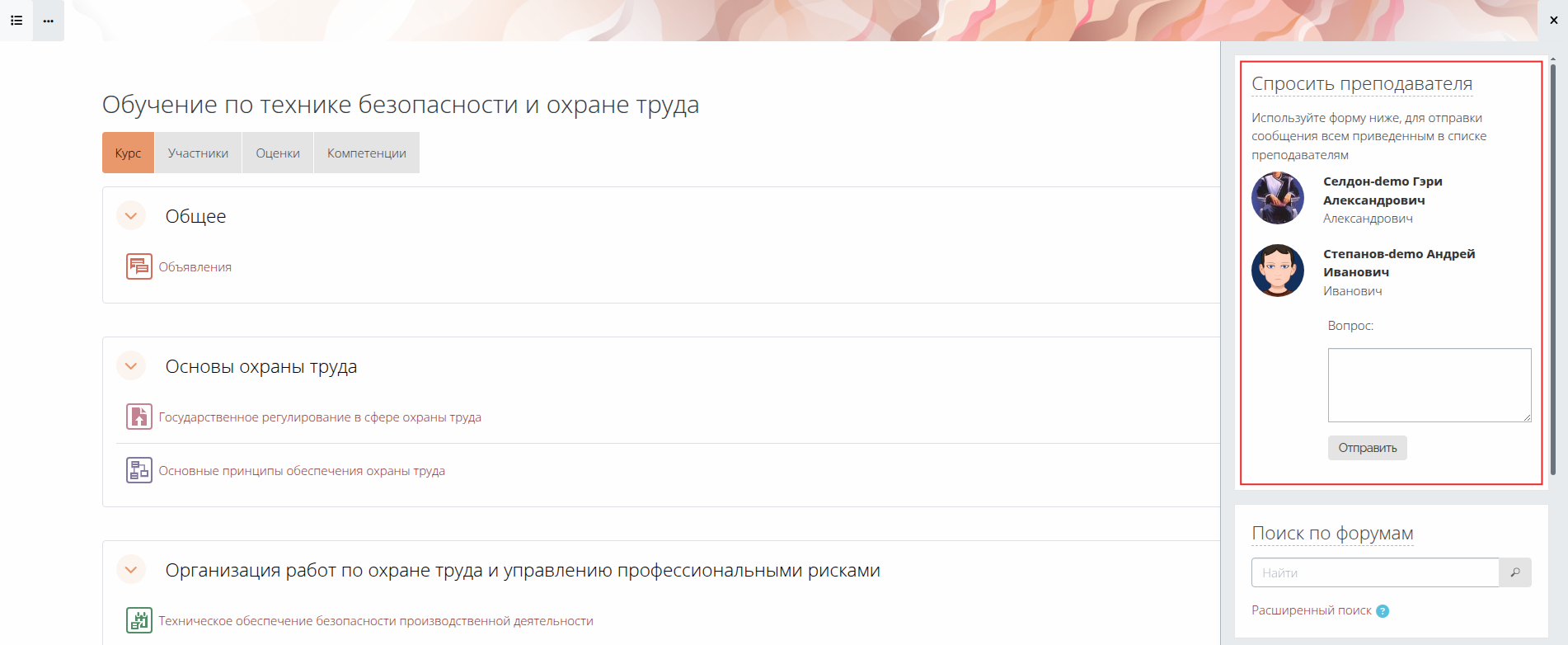 Например, в курсе есть блок «Спросить преподавателя 3KL», для которого преподавателю нужно настроить ролевую модель. По умолчанию этот блок виден всем участникам курса и любой зачисленный в курс пользователь может отправить сообщение преподавателю. Преподавателю нужно отозвать право на отправку сообщений преподавателю для пользователей с ролью «Вольный слушатель».