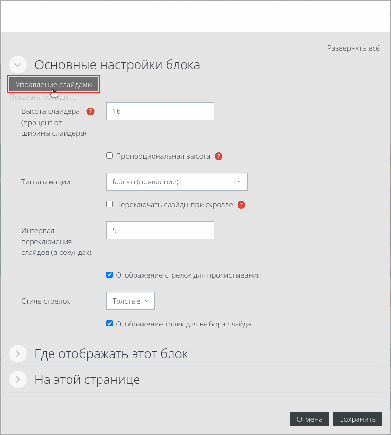 Настройки позволяют управлять отображением блоков курсов (Рис. 3.1.7):
