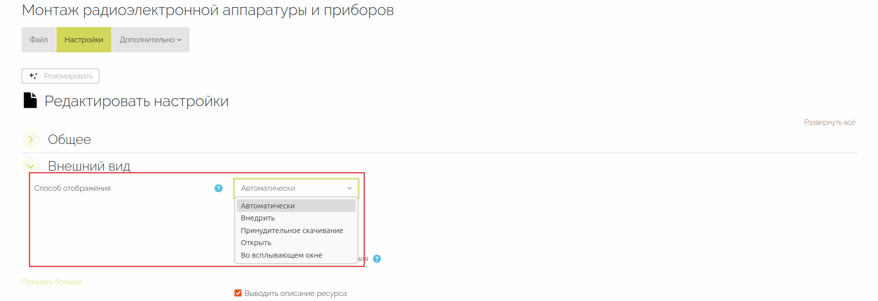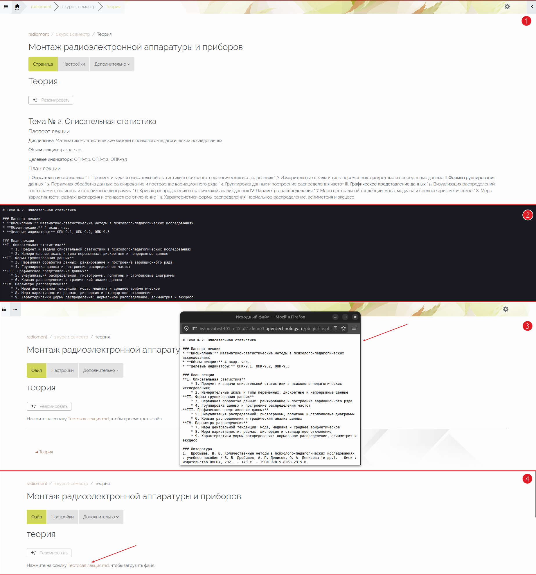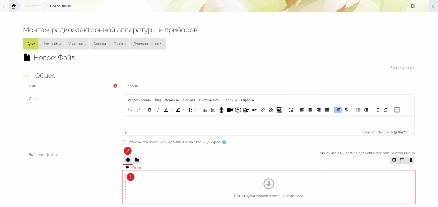 Если создателю курса не важна эстетическая сторона отображения материала, то можно загрузить файл в формате с расширением .md (Markdown) в ресурс «Файл».
