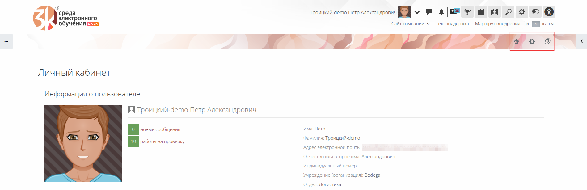 - настройка внешнего вида среды дистанционного обучения с использованием функционала базового