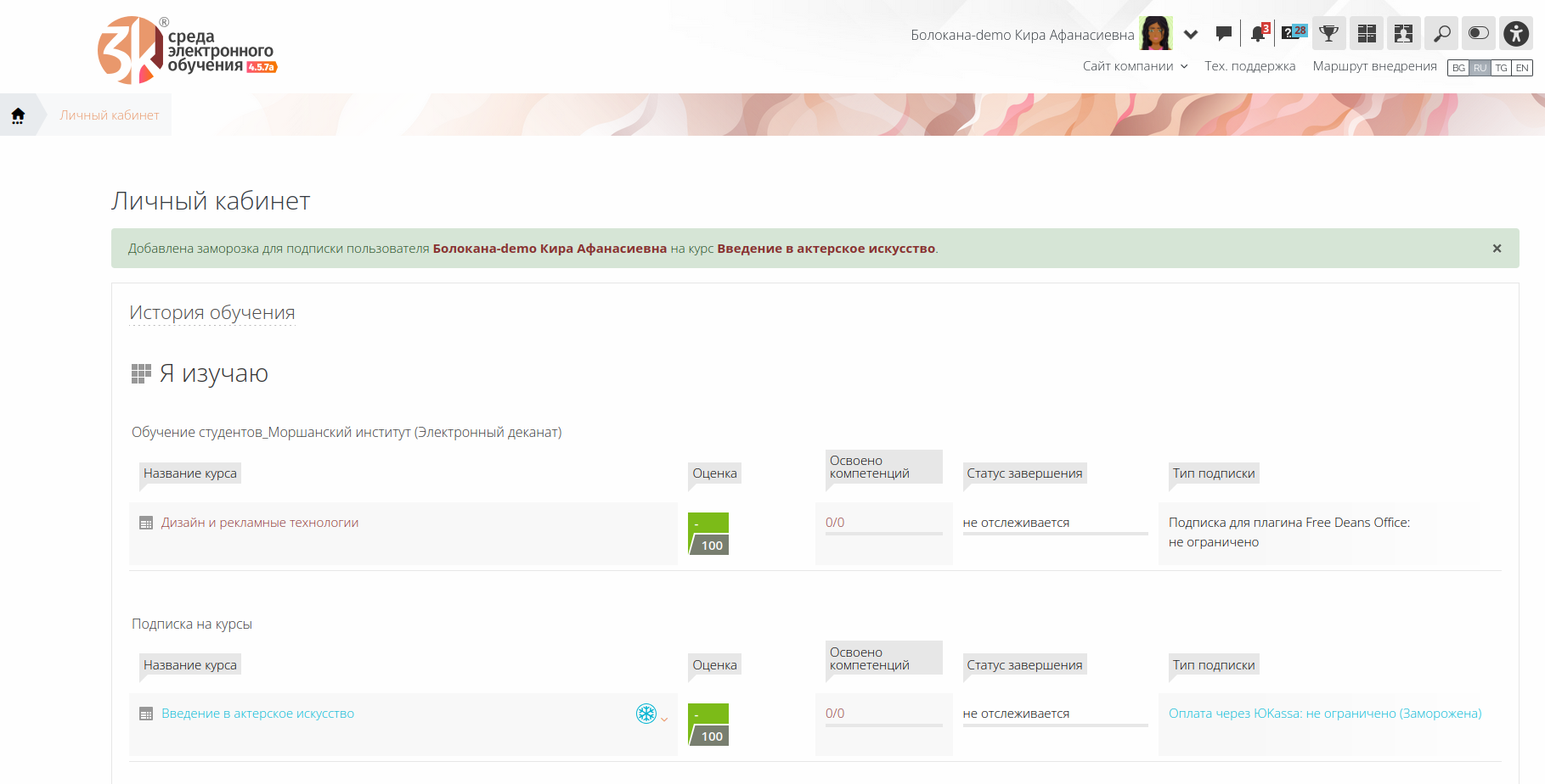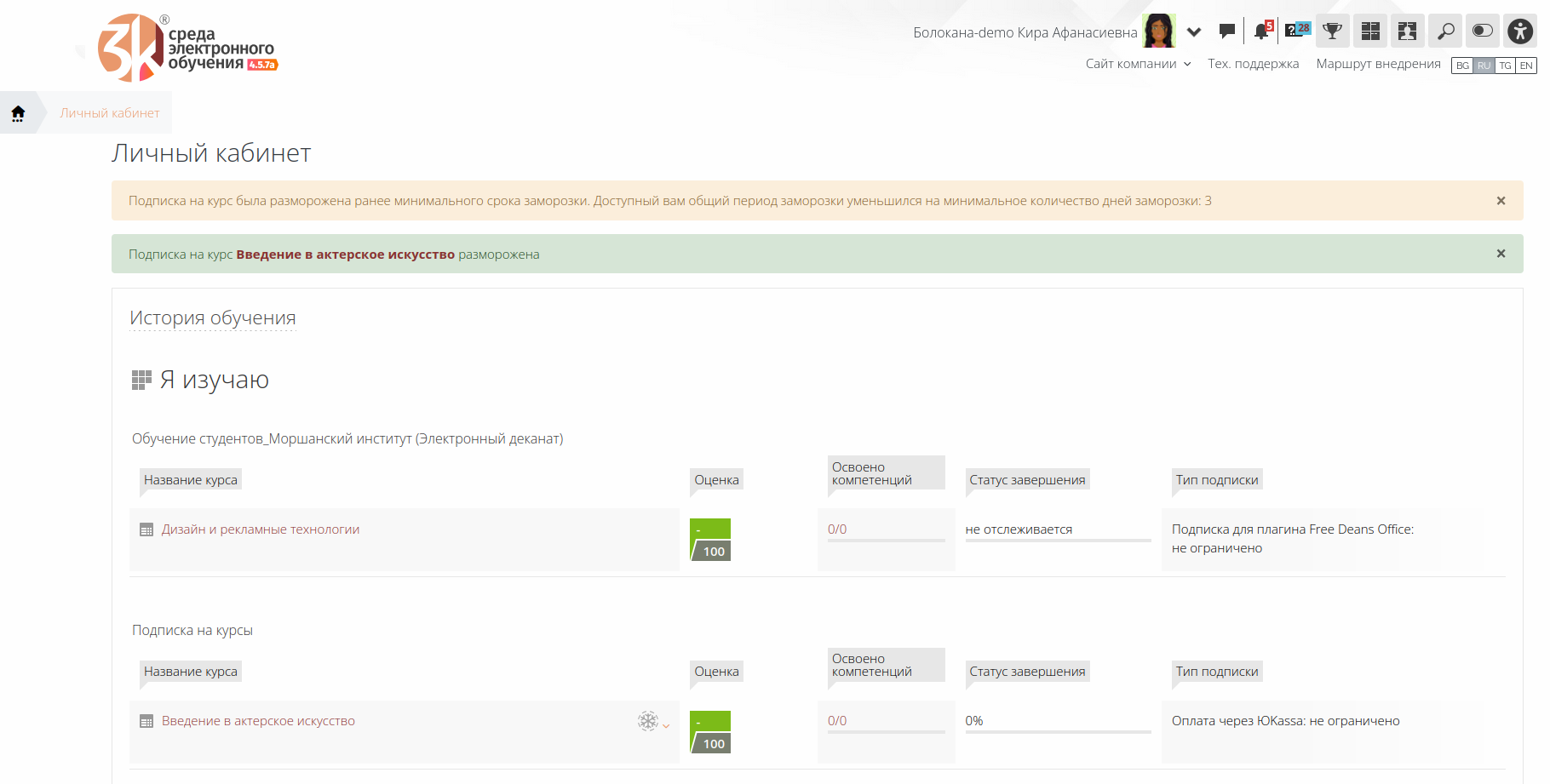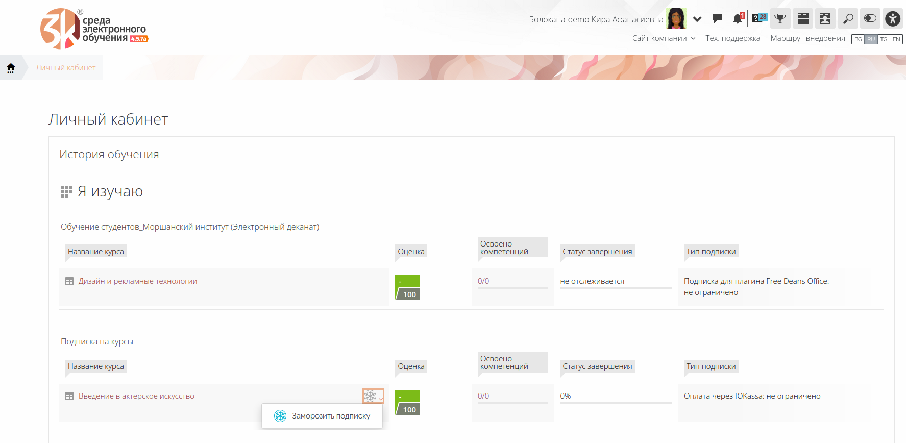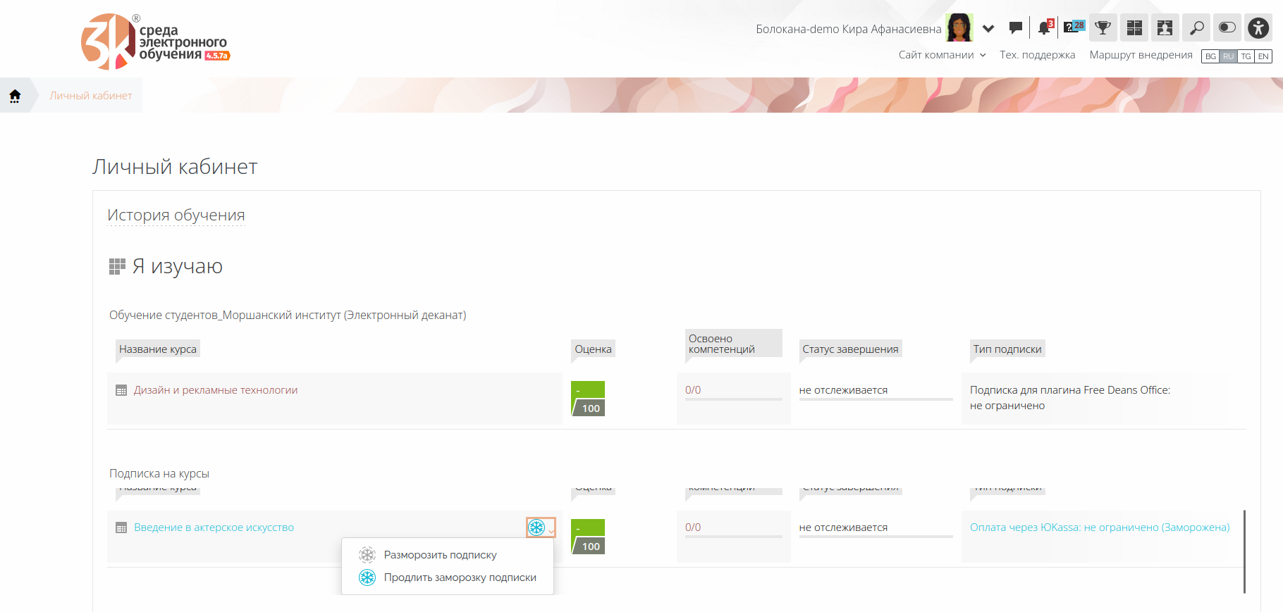 6.2. Применение добровольной заморозки подписки на курс