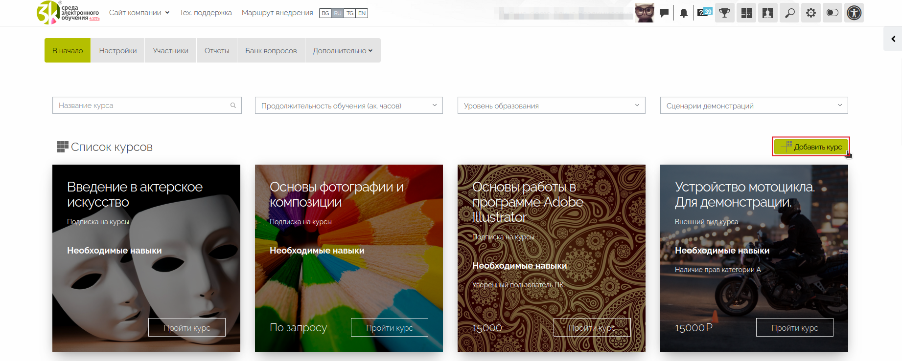 Добавить в СЭО 3KL новый курс можно несколькими способами. Функционал системы позволяет, как добавить курс с нуля, так и создать курсы на основе уже имеющихся данных. Рассмотрим кратко, каким образом можно добавить новый курс в систему.