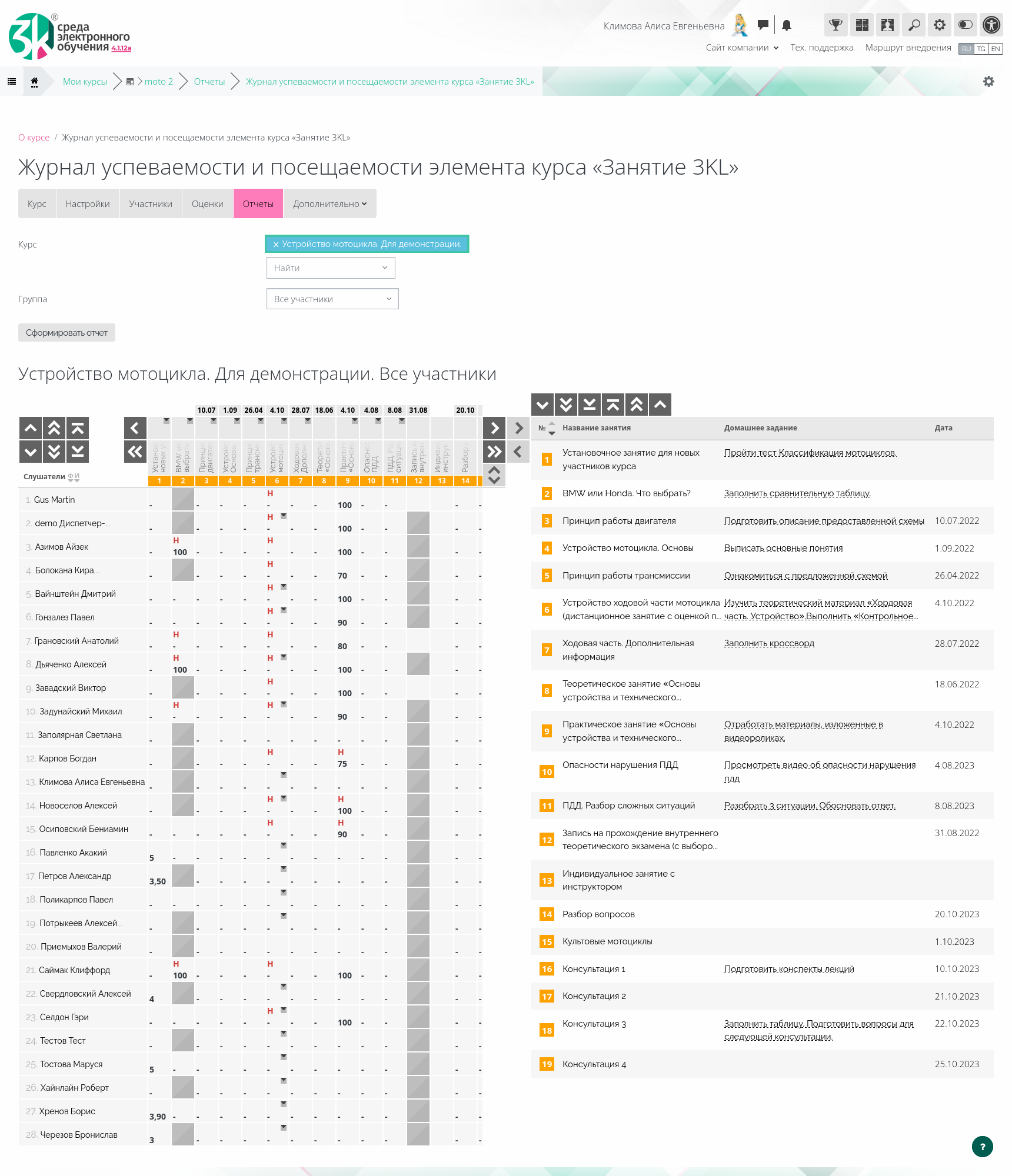 В элементе курса «Занятие 3KL» улучшен внешний вид журнала успеваемости и посещаемости при печати.