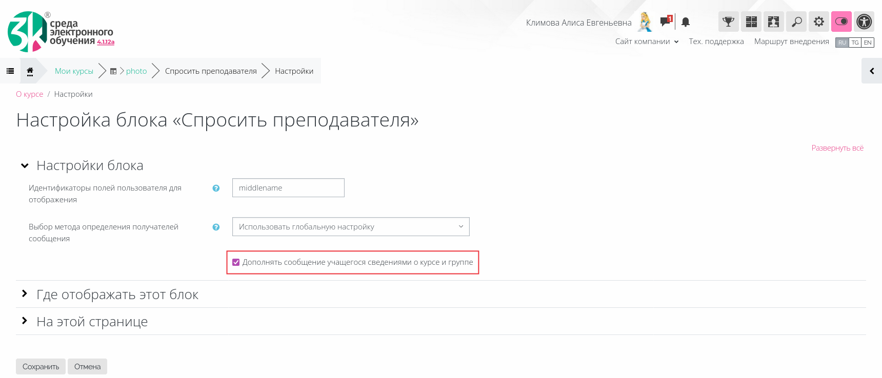 В блоке «Спросить преподавателя» добавлена настройка уведомлений, рассылаемых на почту преподавателя. Теперь в уведомлениях может отображаться ссылка на курс и на страницу курса, с которой поступил вопрос. #6478