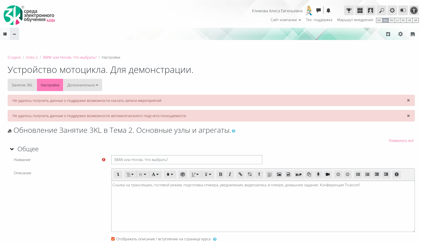 - В элементе курса «Занятие 3KL» исправлена языковая строка, содержащая информацию о типе создаваемого мероприятия по умолчанию. #6469
