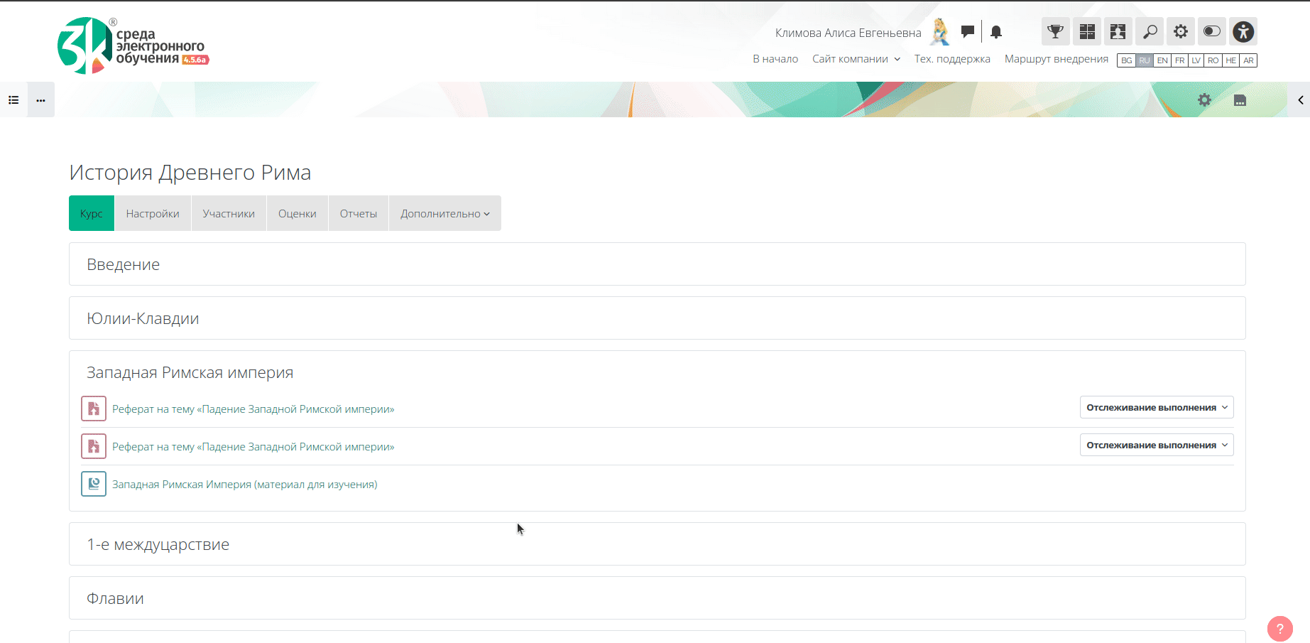 После сохранения настроек элементы типа «Библиотека ресурсов 3KL» станут доступными для просмотра в курсе (Рис. 4.1.6).