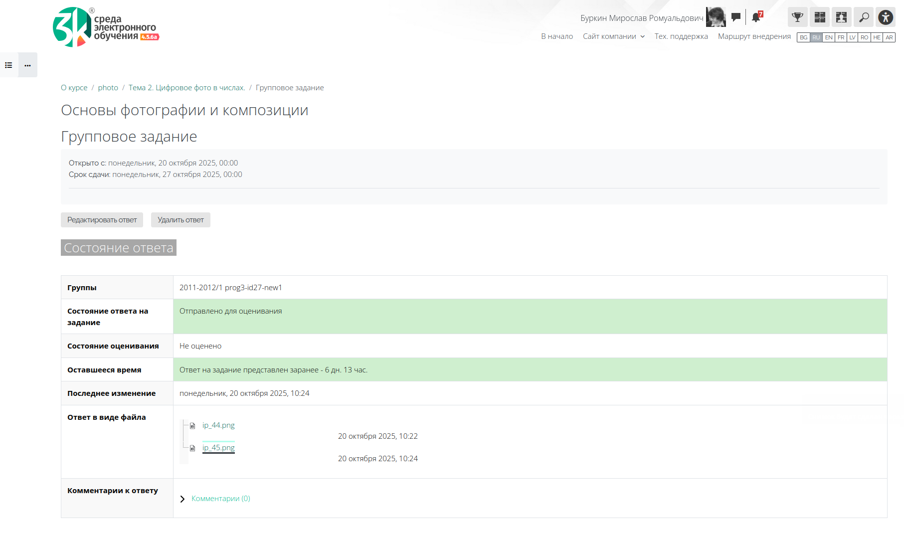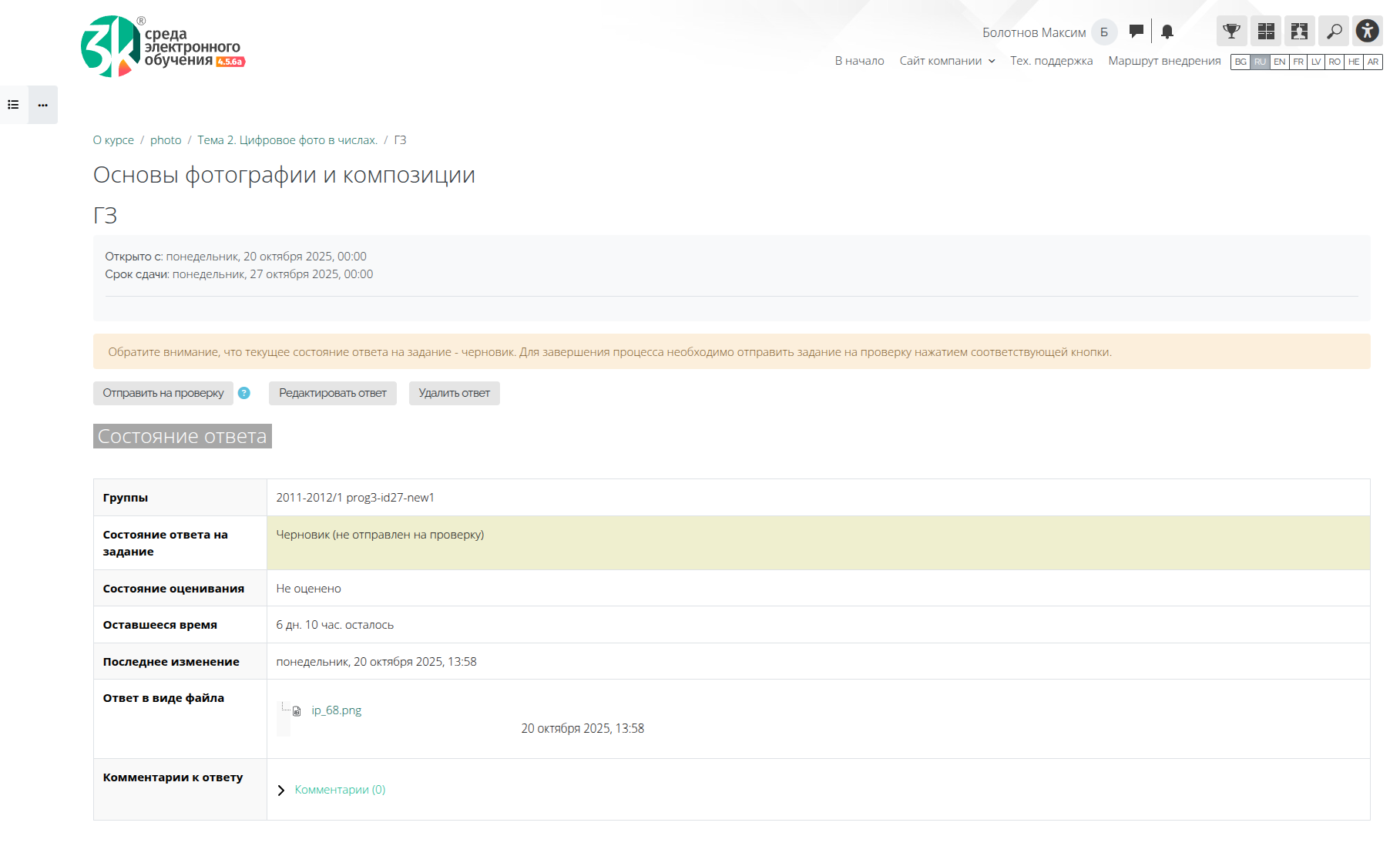 Рис. 3.2.3. Пример основной страницы Задания с отправленным ответом на задание.
