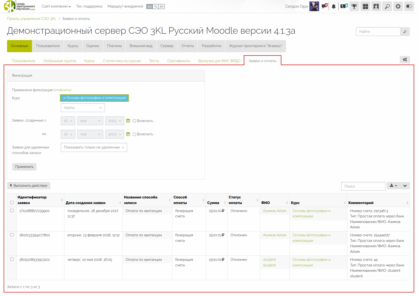 Центр дополнительного профессионального образования «Эксперт-сертификат» принимает безналичную оплату с помощью модуля «Электронная оплата 3KL» в СЭО 3KL. Слушатели могут как оплатить курсы картой, так и сформировать квитанцию для оплаты банковским переводом. Ранее, при просмотре списка платежей, бухгалтер испытывал неудобства из-за отсутствия фильтрации и сортировки. Теперь бухгалтер имеет возможность отобрать платежи по диапазону, курсу, фамилии слушателя, статусу и другим параметрам. Дополнительно появилась возможность выгрузить все или отобранные платежи в виде электронной таблицы.