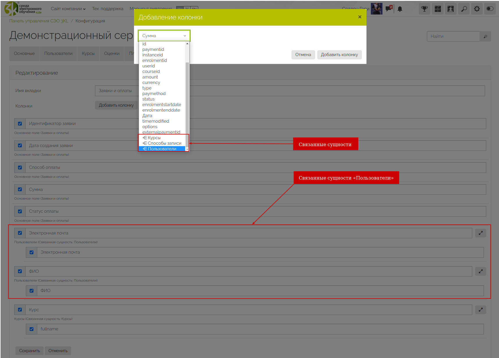 В панели управления СЭО 3KL появилась возможность добавлять через конфигуратор поля одной и той же связанной сущности в виде отдельных колонок. Ранее они добавлялись только в виде составного поля в одну колонку, что затрудняло сортировку. #4942
