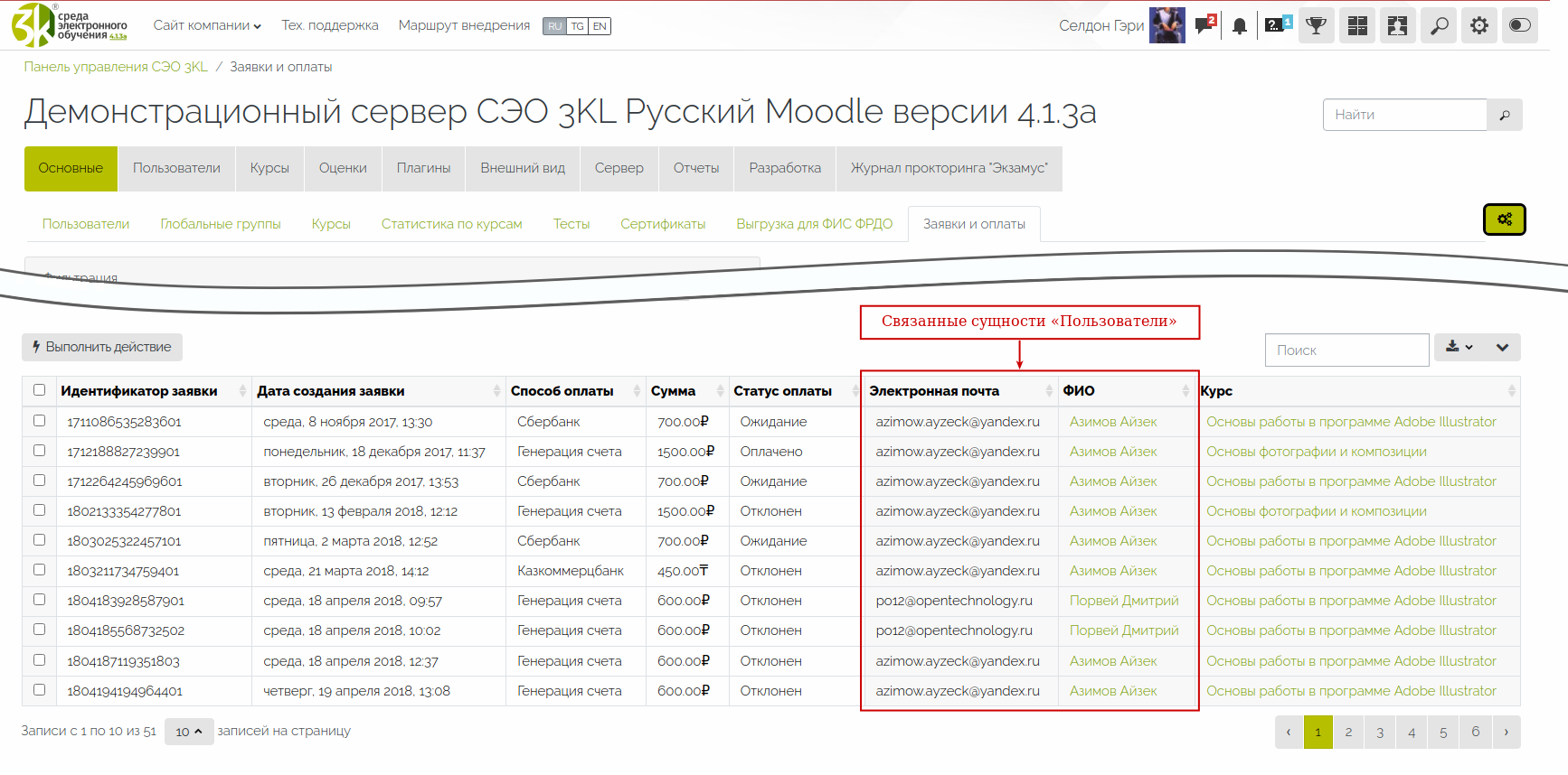 Диспетчер-администратор учебного портала курсов ДПО ежемесячно формирует для бухгалтерии списки заявок и платежей за курсы, в которые ему нужно добавлять дополнительные сведения о пользователях: ФИО, электронная почта и др. Раньше, если администратор добавлял одновременно ФИО пользователя и электронную почту пользователя, они отображались в составной колонке, что затрудняло поиск и фильтрацию. Теперь появилась возможность отобразить их как две независимые колонки.