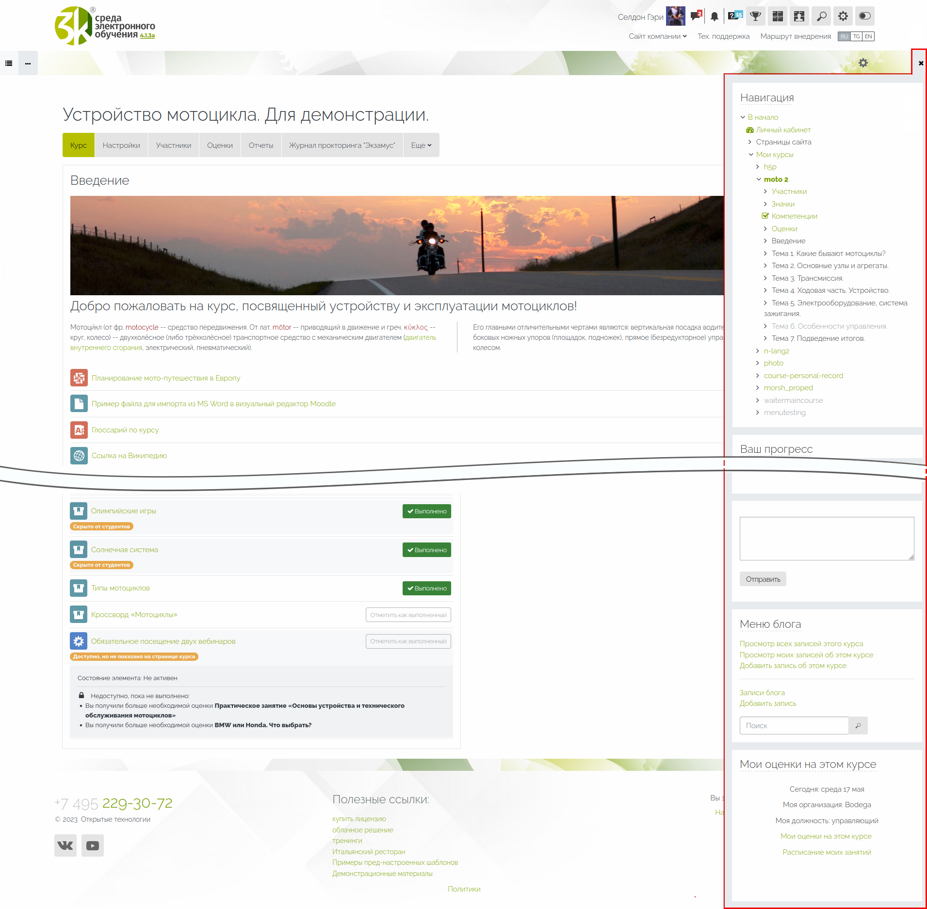 Преподаватель активно применяет в курсе информационные блоки (календари, отображение прогресса в курсе, рейтинг курса и др.), а большинство слушателей курса использует мобильные устройства. Раньше на мобильных устройствах развернутые блоки неудобно было пролистывать. Теперь на экране мобильного устройства все блоки расположены в выдвижной панели блоков, и просматривать их стало удобно.