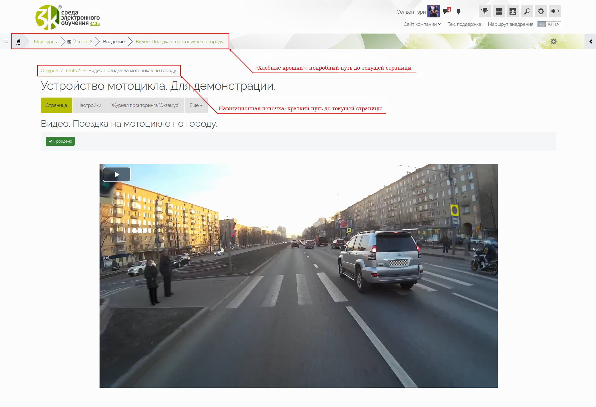 «Хлебные крошки» и навигационная цепочка на странице курса