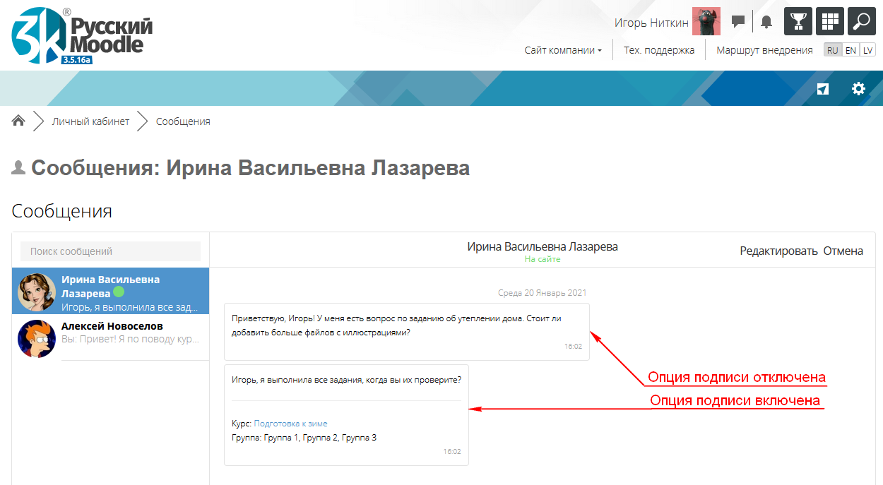 Блок Спросить преподавателя. Добавление подписи к сообщениям слушателя
