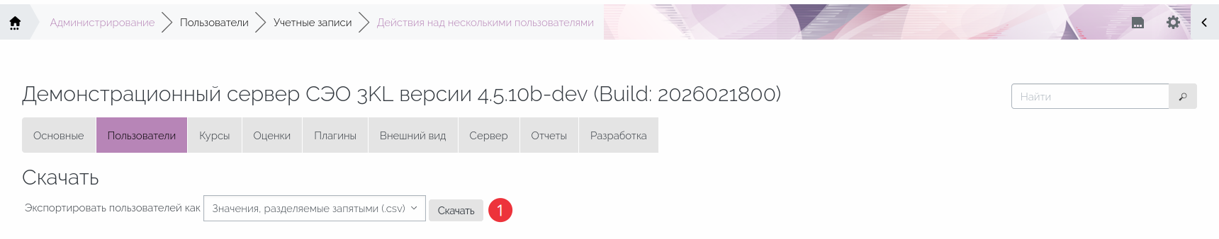 Рис. 3. Скачивание списка пользователей в файле формата CSV.