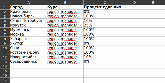 В этом случае разработчик курса увидит, какой процент слушателей из какого города завершил курс или указанный при настройке отчета элемент курса «Пакет SCORM», и сможет собрать эти данные в общую статистику по подразделениям.