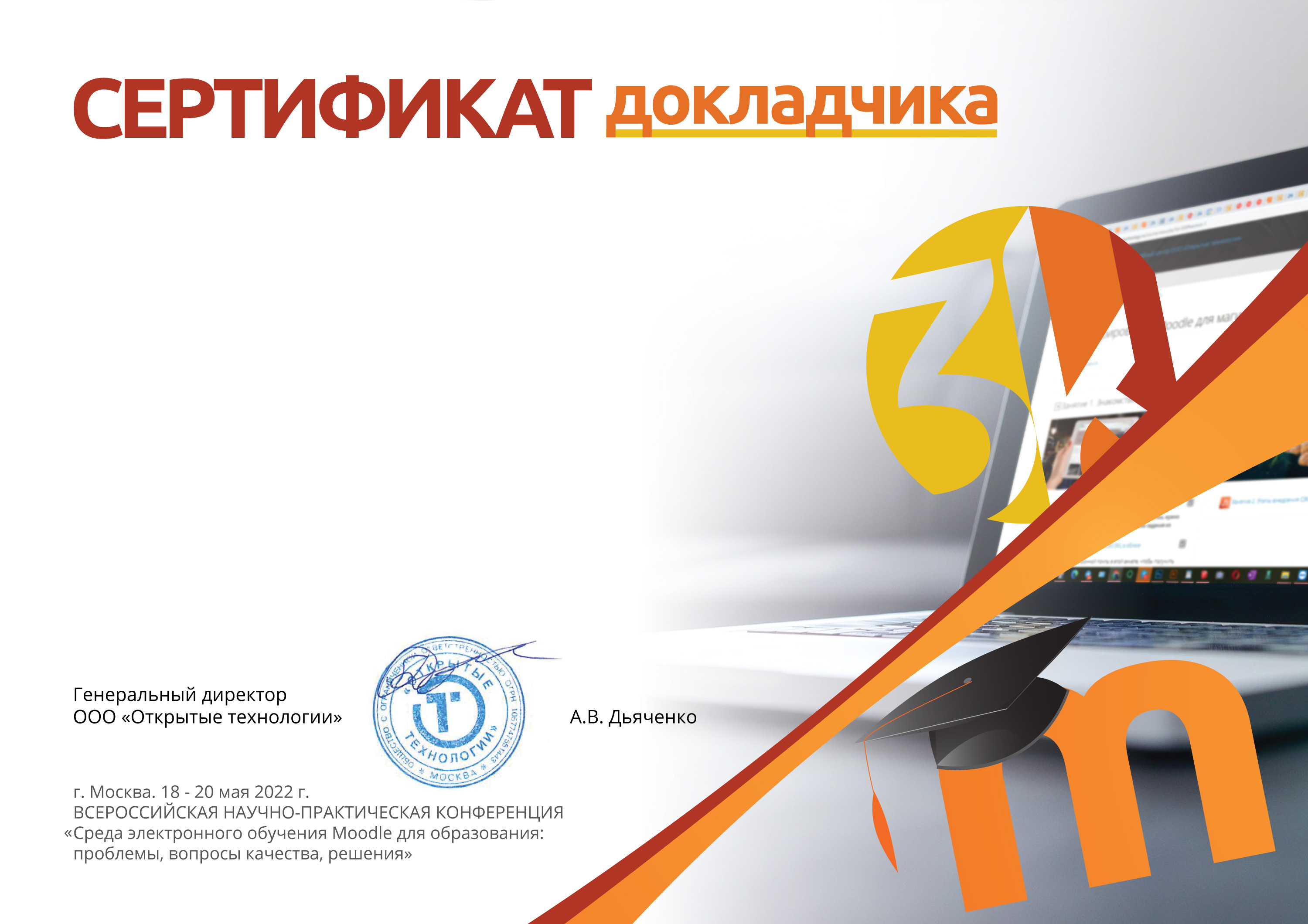 - инструмент автоматического формирования сертификата для участника/докладчика конференции.