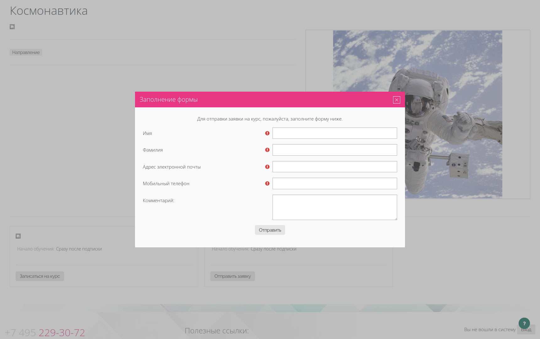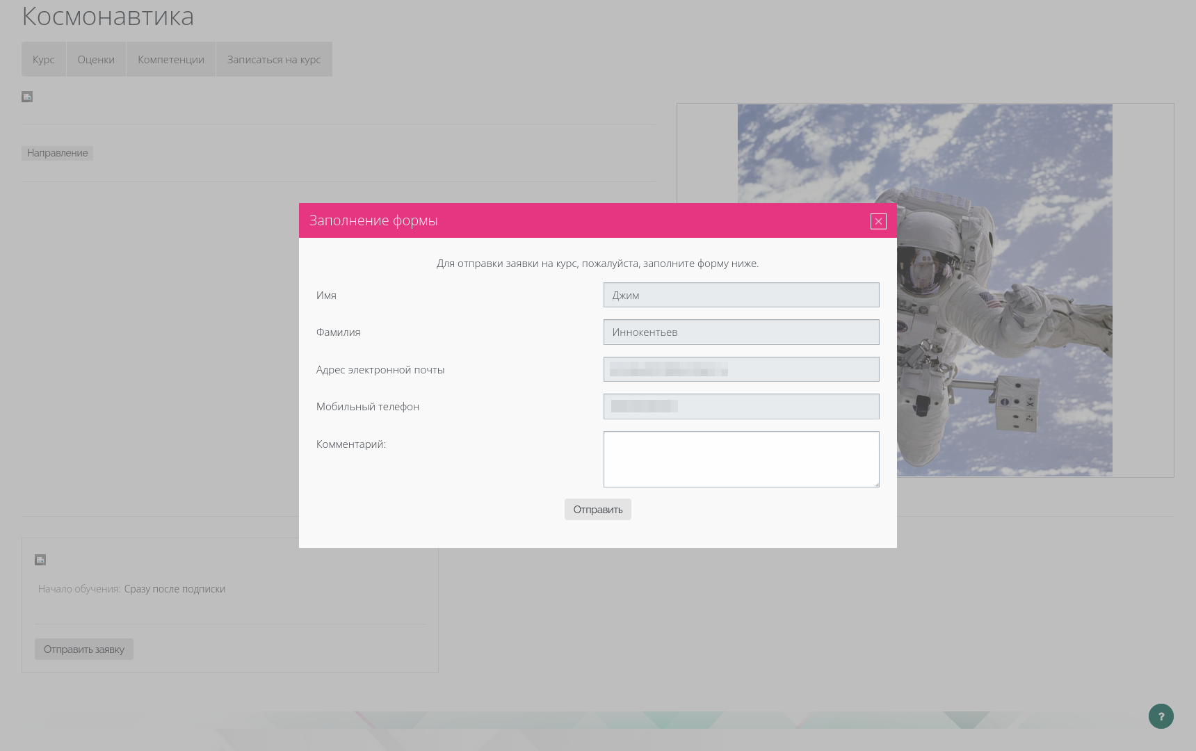 Модальное окно для подачи заявки на курс для авторизованного пользователя