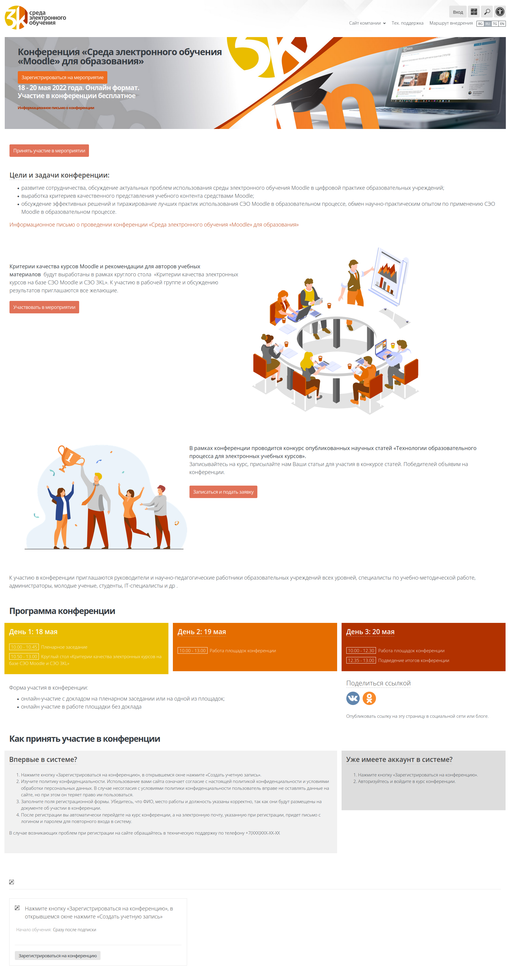 Пример страницы описания курса-конференции с набором дополнительных кнопок